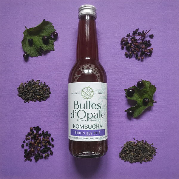 Ce Kombucha bio fruits des bois est une boisson fermentée pétillante à base de cassis, myrtille, sureau et feuilles de cassis. Brassé artisanalement dans les Hauts-de-France, il allie plaisir fruité et bienfaits digestifs.